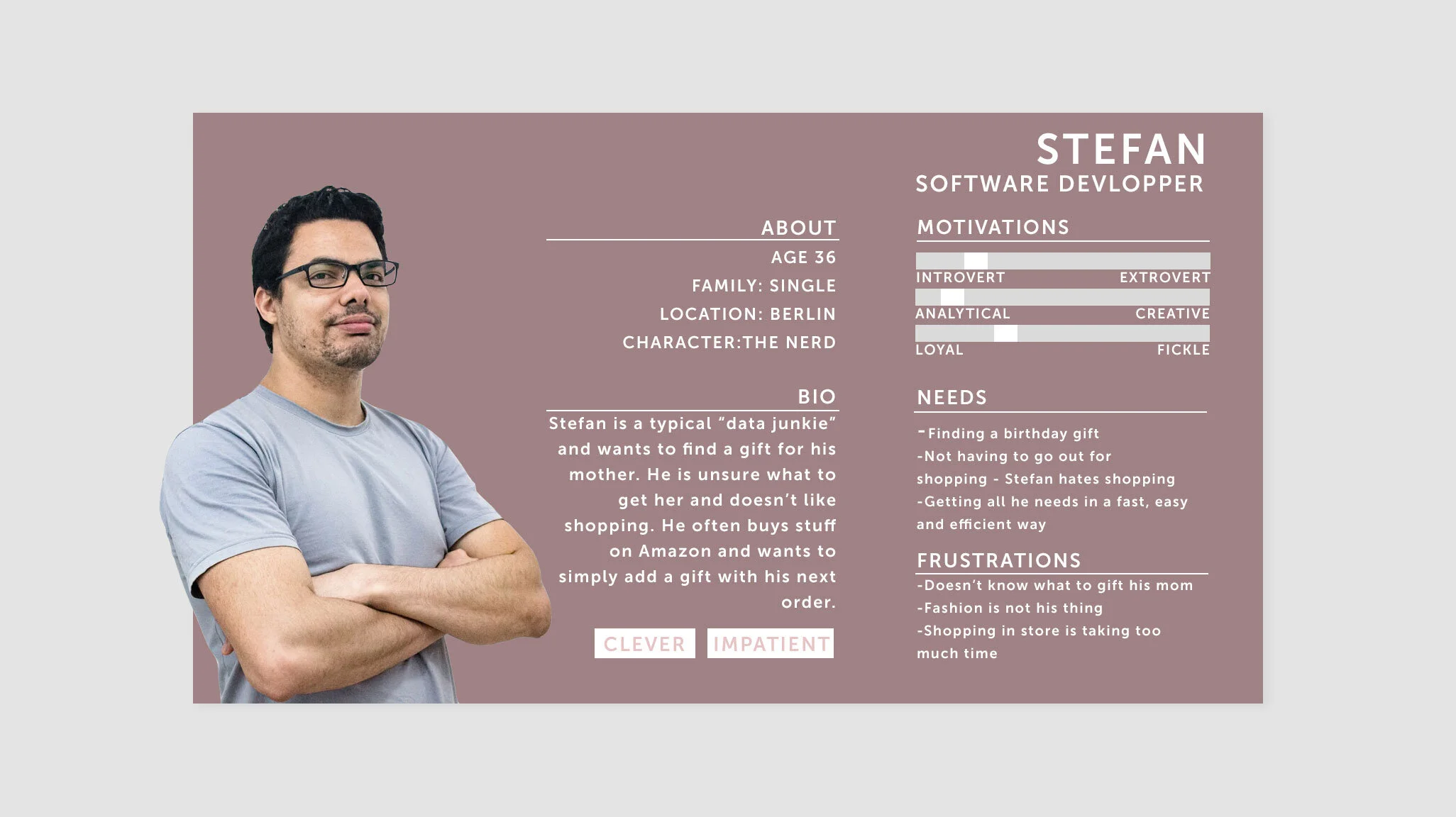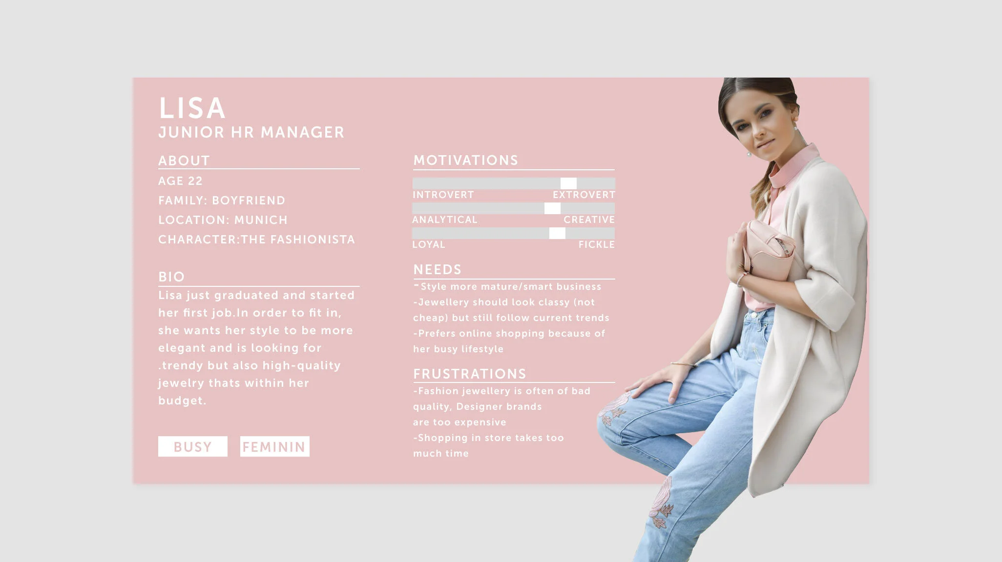 Based on the input from our workshop, I then tried to create two typical personas to dive into their background, goals, needs, motivations and frustrations.