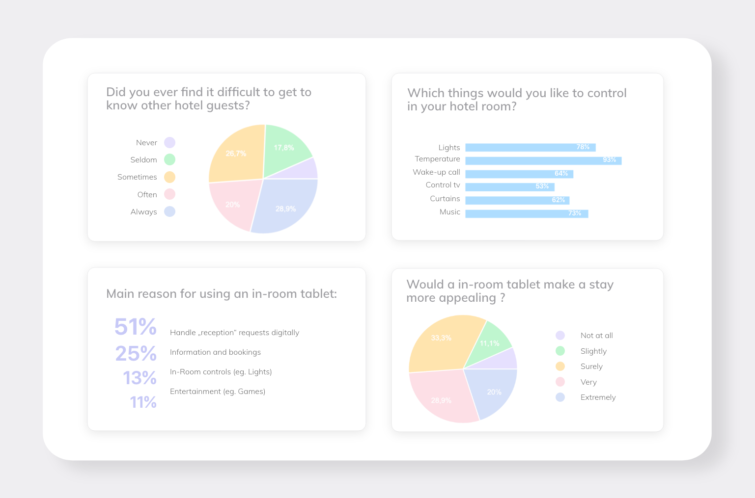 In addition to this I conducted 9 semi-structures interviews with typical hotel guests and 3 hotel managers to back up the findings from my survey and put them into context.