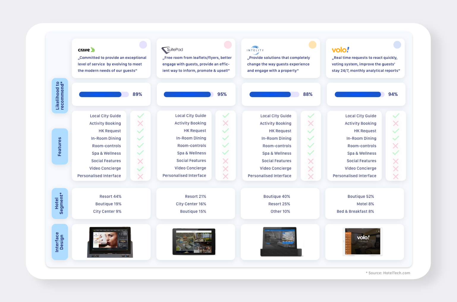 There is a remarkable range of different hotel types and guest types with individual needs. Because it is difficult to satisfy this variety of demands with one interface design, I decided to narrow down my target group to boutique hotels (did some extra research on that).