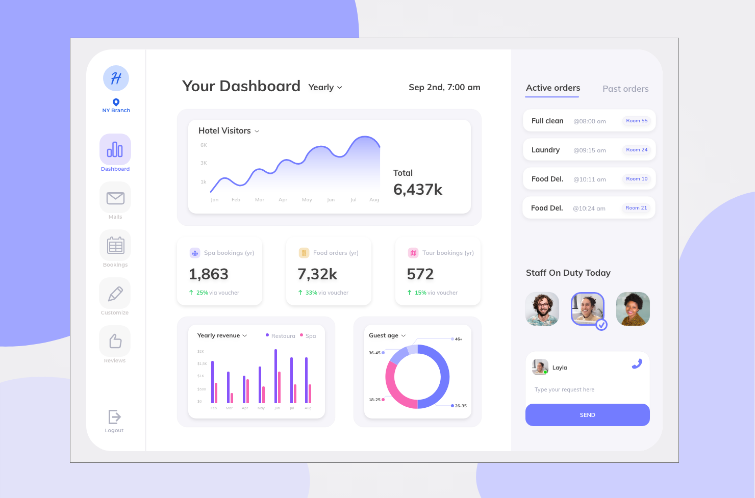 And this is the end result: One main system that identifies the guest type through an onboarding process and offers a specific interface for the needs of that type including a simplified communication section, dynamic vouchers, housekeeping orders, food orders, spa and tour booking, live information about hotel amenities and many more features.